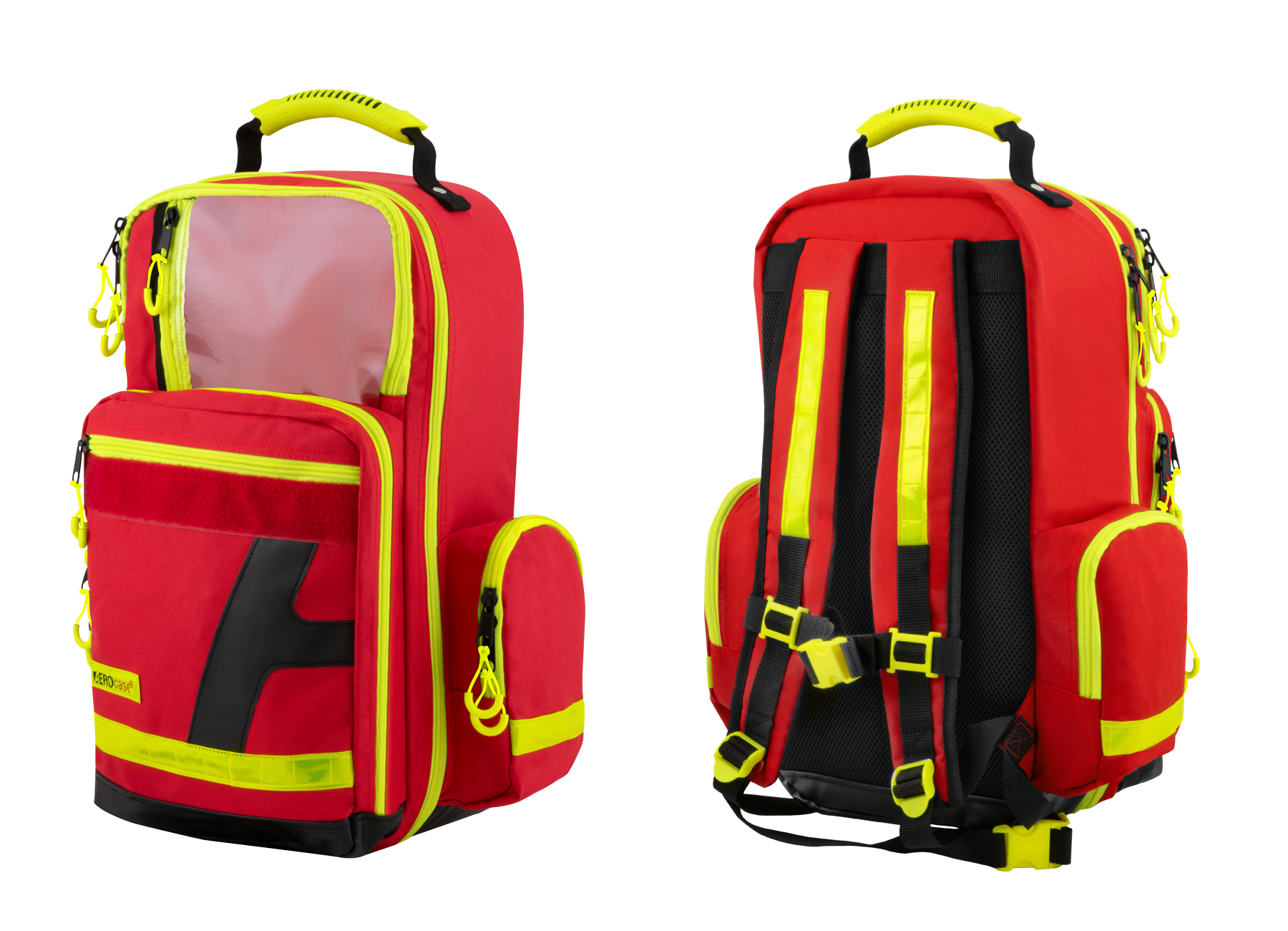 Gepolsterte Rückentragegurte mit Schnellverschlussgurten zur Fixierung am Körper